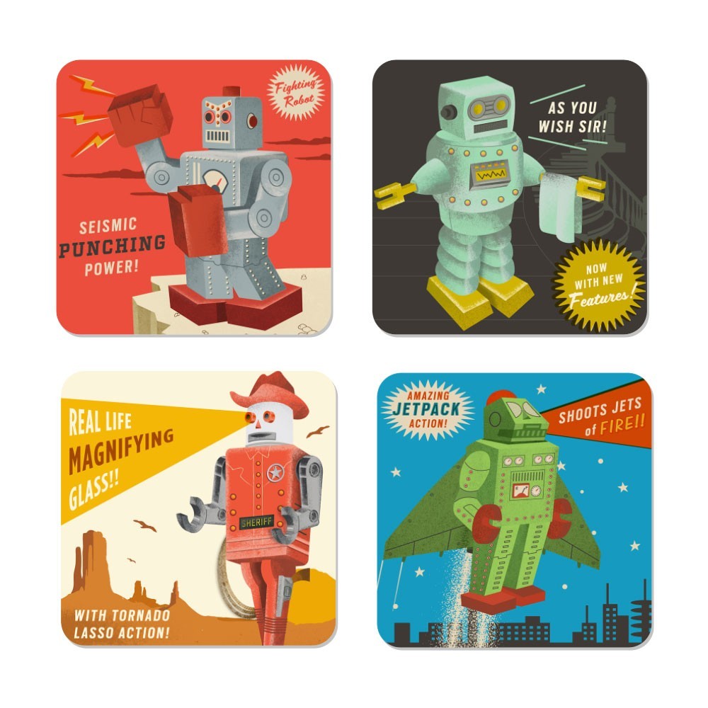 For the pop and kitsch-obsessed, get excited for this set of 4 Roboutique Coasters. With cork bottoms and a lacquered top, they’ll keep your drink from ruining your favorite midcentury piece and add a fun pop of color at the same time.