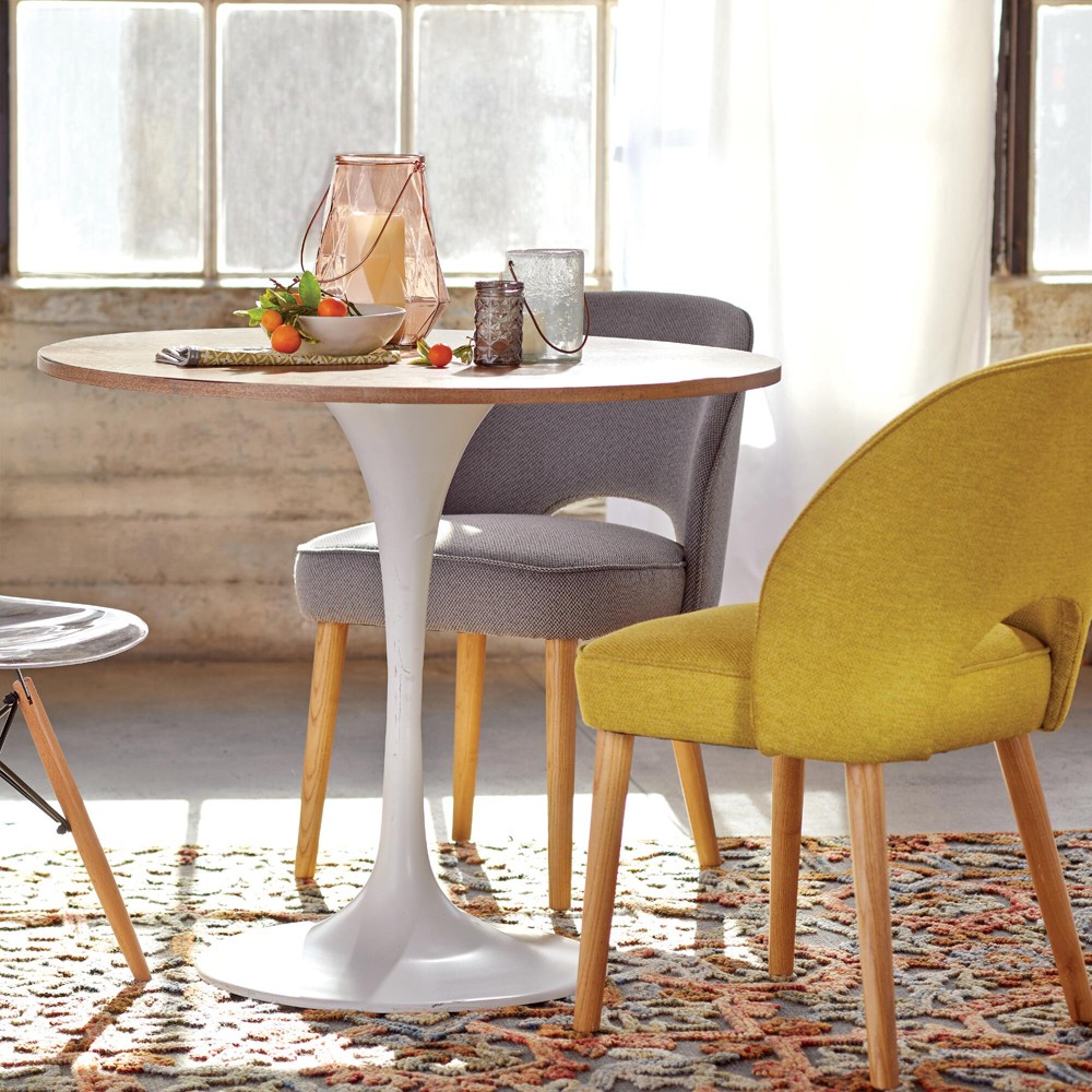 With a classic fluted table shape and trendy oak-finished top, this Wood and White Metal Leilani Tulip Dining Table might be the perfect midcentury hybrid to get that wood furniture fix in your home.