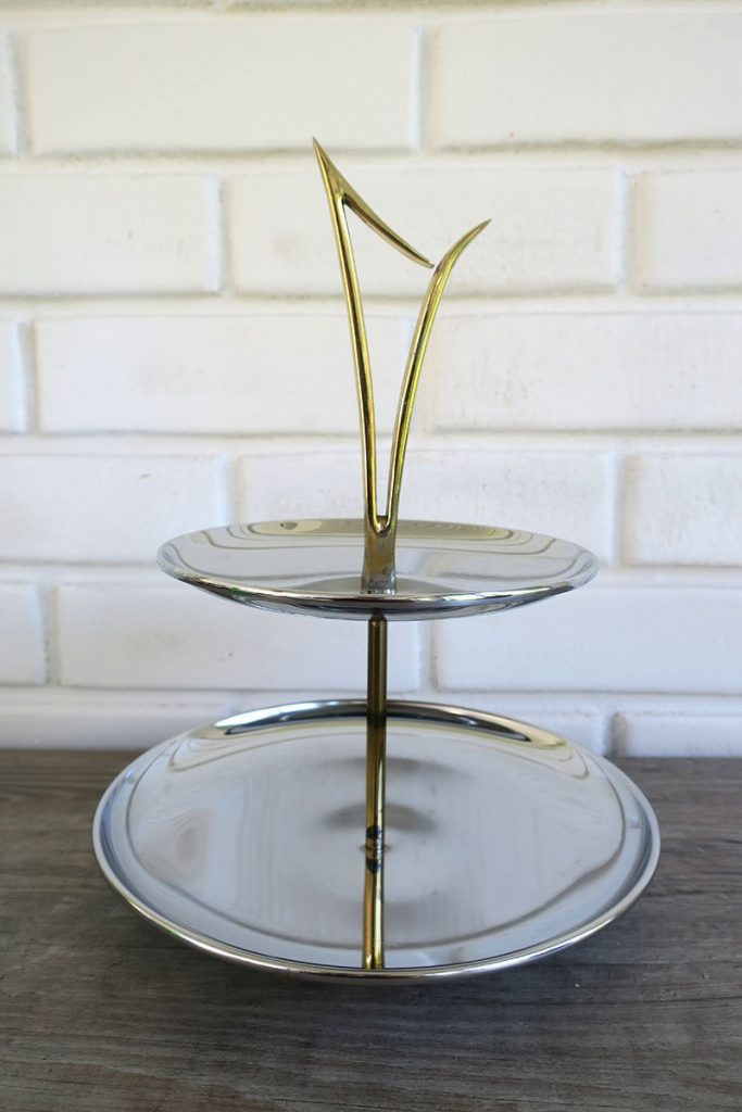 Hosting a get-together doesn’t have to break the bank. This affordable, yet stylish, tiered serving tray is a great way to display delicious baked goods and hors d’oeuvres.