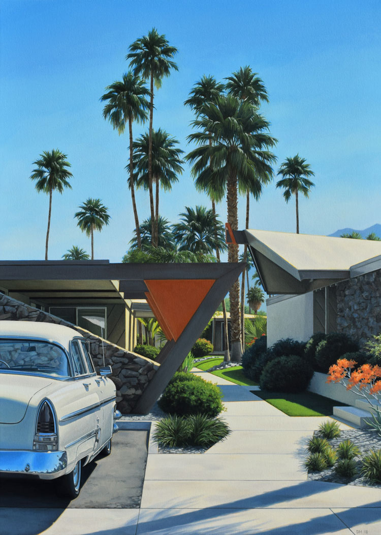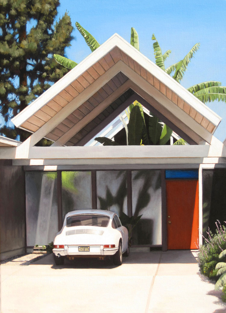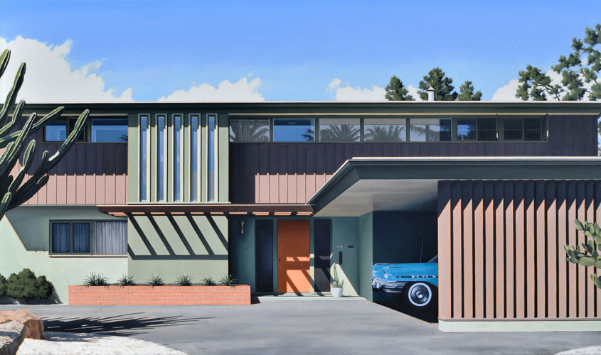 I eventually started doing paintings of the post-war tract homes around me, mixed with the classic car culture. Eventually that lead to the more high-designed mid century tracts like the Eichlers in my town. Once I started painting them and learning about them, I never looked back. They were so dynamic and yet understated. They were also under appreciated. This was the beginning of the 2000s and nobody was painting them realistically, with very few people even photographing them.