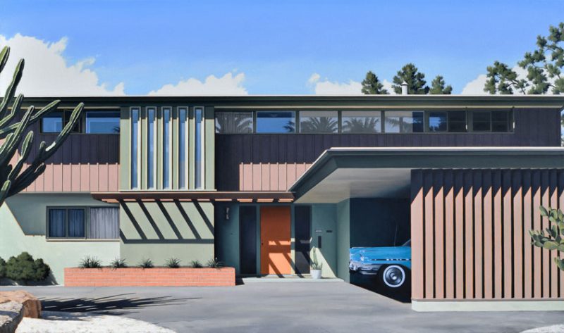 In the early 2000s, few people cared about the region’s forgotten mid century tract homes, but something about the Golden State’s much maligned suburban sprawl spoke to the recent art school graduate and he started recreating these modernist dwellings in his photo-realistic oil paintings.