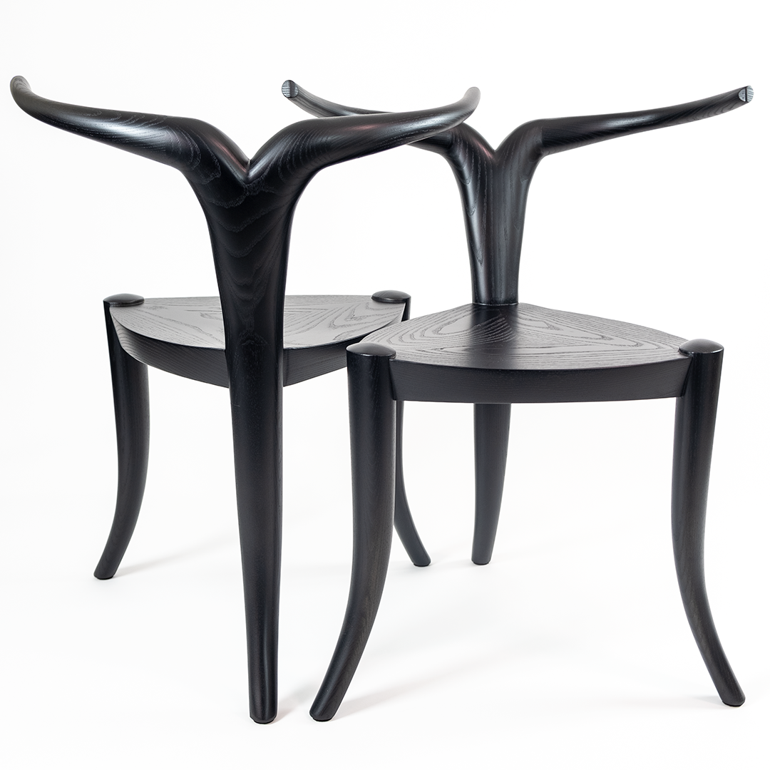 Artist and designer Jomo Tariku grew up in Ethiopia, and his childhood influenced his furniture designs. For example, antelopes from East Africa inspired the unique shape of these chairs. To learn more about his work, visit Jomo Tariku Furniture.