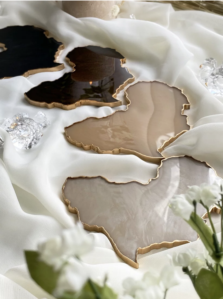 This set of coasters represents the beauty of melanin and celebrates its diversity. These handmade beauties in the shape of Africa will elevate your coffee table, bar or side table. To learn more, visit Rain Sky Home.