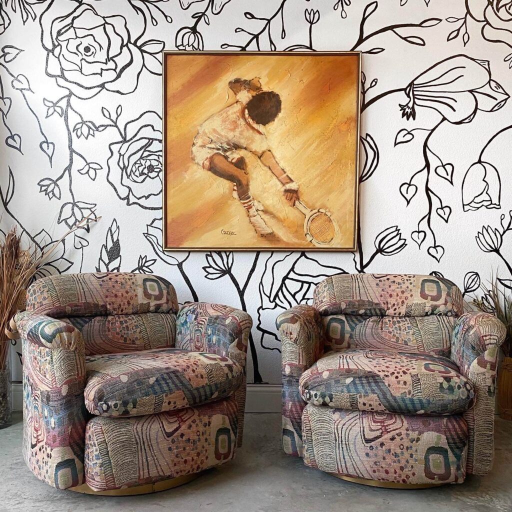 Mal: I’m Mal, and I wear many hats with Curated Haus. I do most of our research, which includes finding new product, identifying pieces and looking into pricing trends. I also style and photograph all our pieces for Instagram and Etsy. Design is sort of my wheelhouse. When we have pieces that have to be completely refinished or have parts that need to be color-matched, I handle that as well.