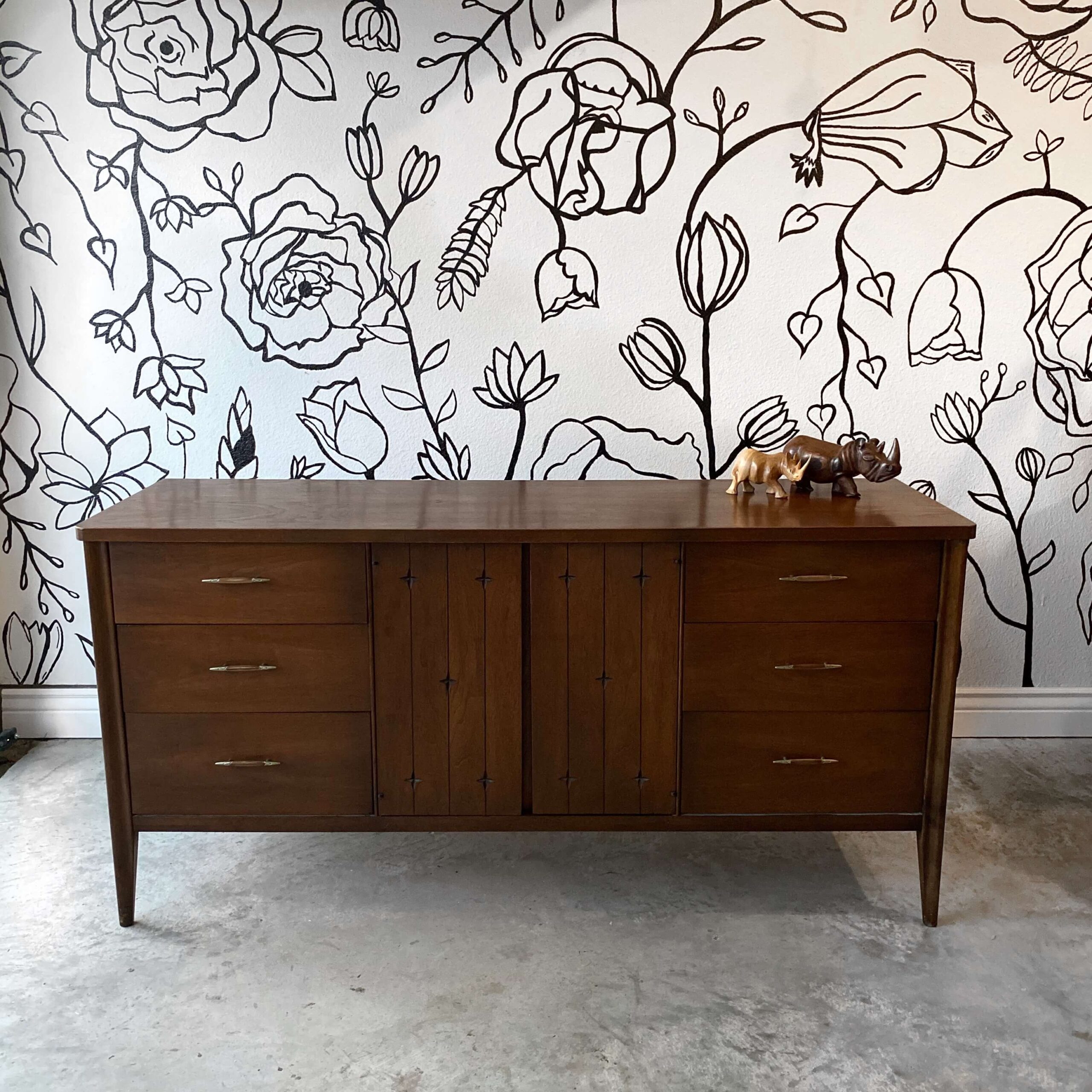 Mal: For provenance, we mostly rely on legwork. A lot of mid century pieces aren’t marked, so we have to research specific elements of the piece to try and narrow down a maker. The more we research, the easier it is for me to identify the designer or region just because I’ve started to recognize little differences between designers. Certain makers, like Nathan, have very recognizable styles. For one bedroom set, we had a stamp that narrowed down the piece to a specific factory that ended up being a historical site in Texas.