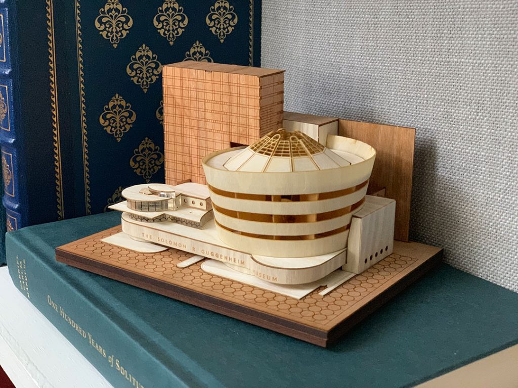 The Guggenheim is faster, easier kit to build with few pieces, the Farnsworth is a bit more involved and the newly released Unity Temple kit has the most pieces of them all. There’s no need to be intimidated, however, because the instructions included do an excellent job of guiding through the process.