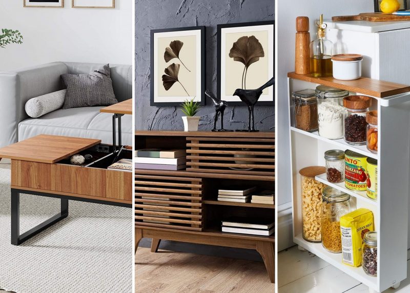 Perhaps what some would call clutter, you would call tchotchkes. If that’s you, there’s no shame in wanting to show off your stuff. For a more visible storage option, why not go for a beautifully designed bookcase or a cane-accented ètagère for an MCM twist? But if you need a storage method that can be accessed quickly and often, try out a narrow rolling shelf that will fit in even the most awkward of spaces.