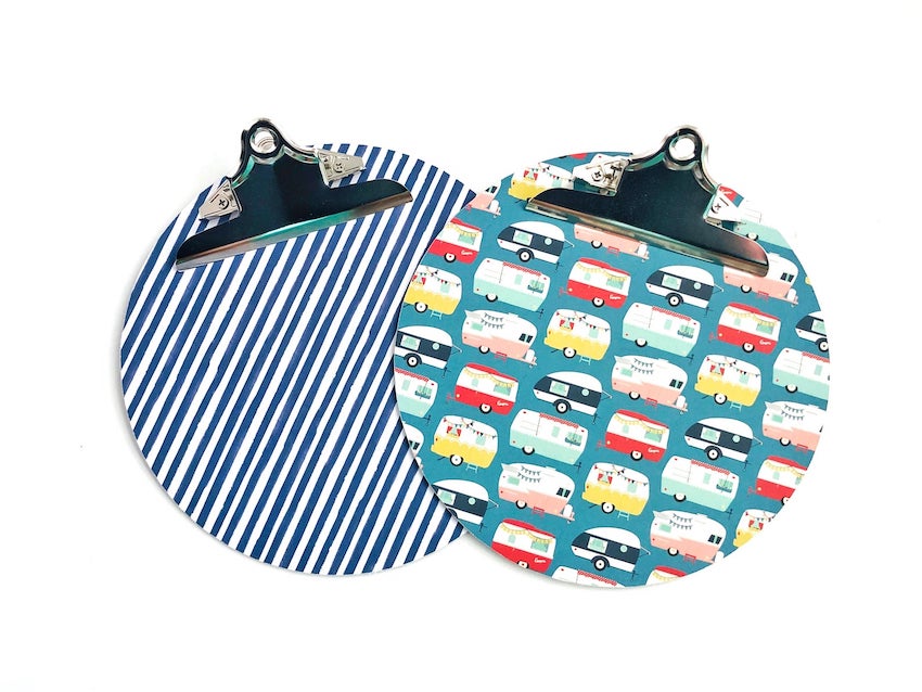 These handmade round clipboards will bring some cheer into your daily tasks with prints of retro campers and stripes. Take a look through this vibrant ETSY shop for notepads, cards and mugs.