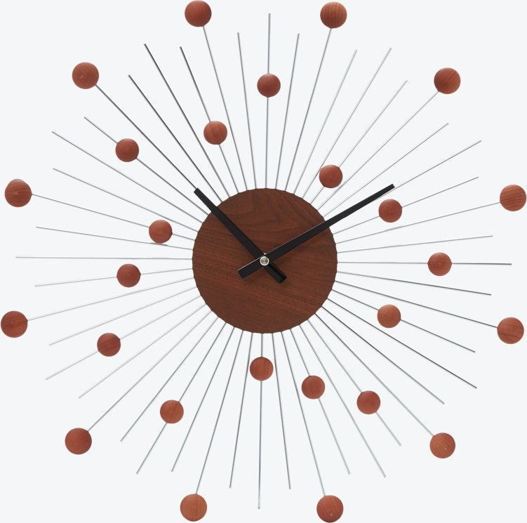 This wood grain and metal starburst clock brings a mid century look to any office!