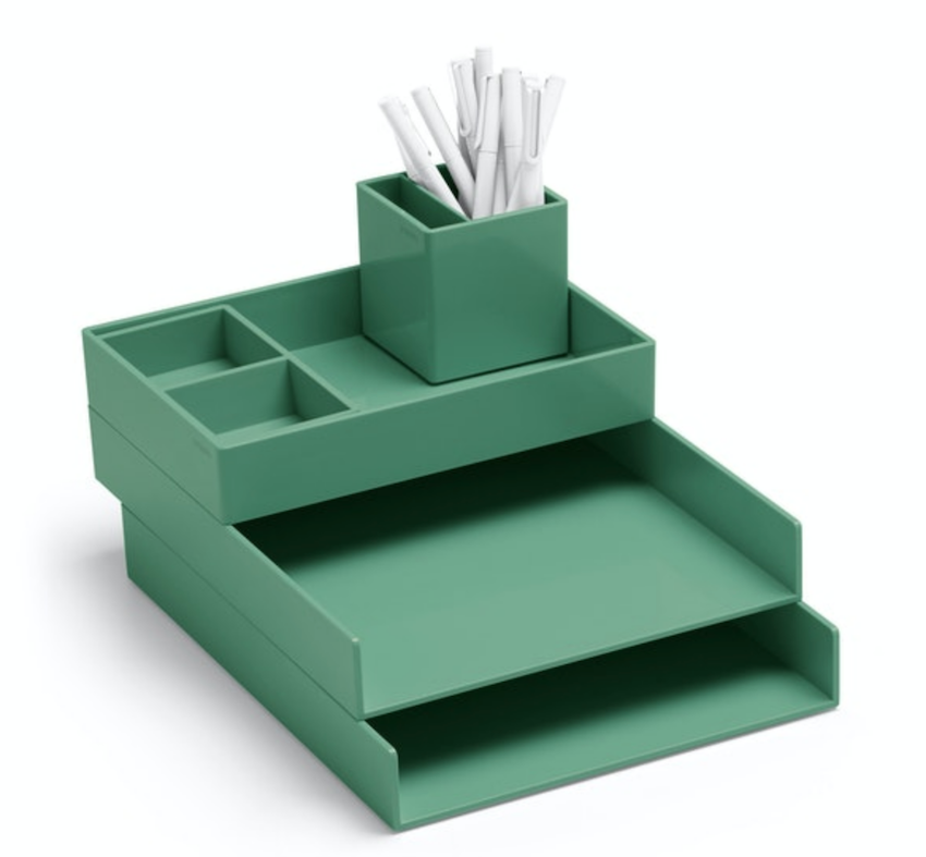 Need to organize your desk? Do it in style with this sage-green set that has a place for everything.
