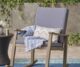 Bring the whole family outside for dinner. This 6-piece outdoor dining chair set from Joybird has a great slat back design and wooden armrests for a pop of color and texture. Kinsey Outdoor Dining Chair 6-Piece Set, $1740.