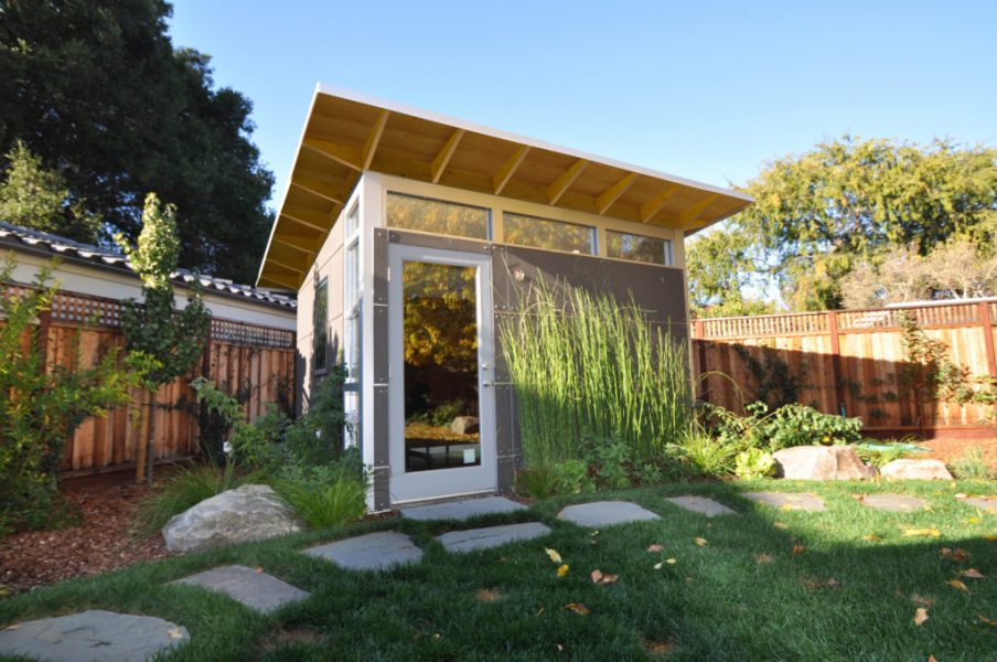 How much? Backyard Eichlers start at $38,500 for a fully-installed 10′ by 12′ shed.