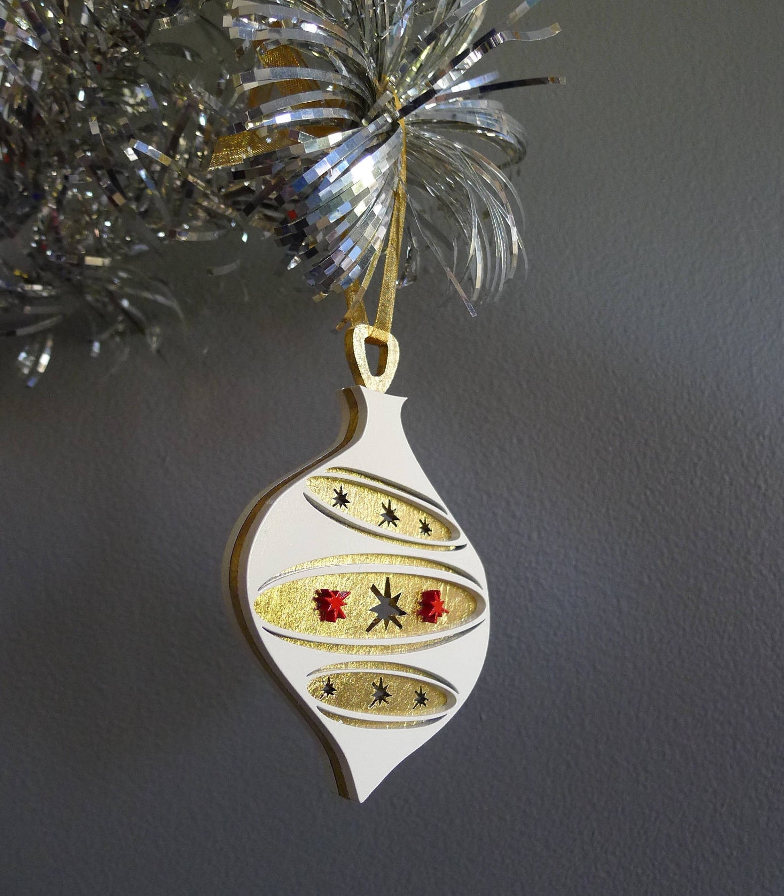 Are you a fan of wood finishes and natural textures? Celebrate the season with these woodcut baubles carved with classic mod motifs.