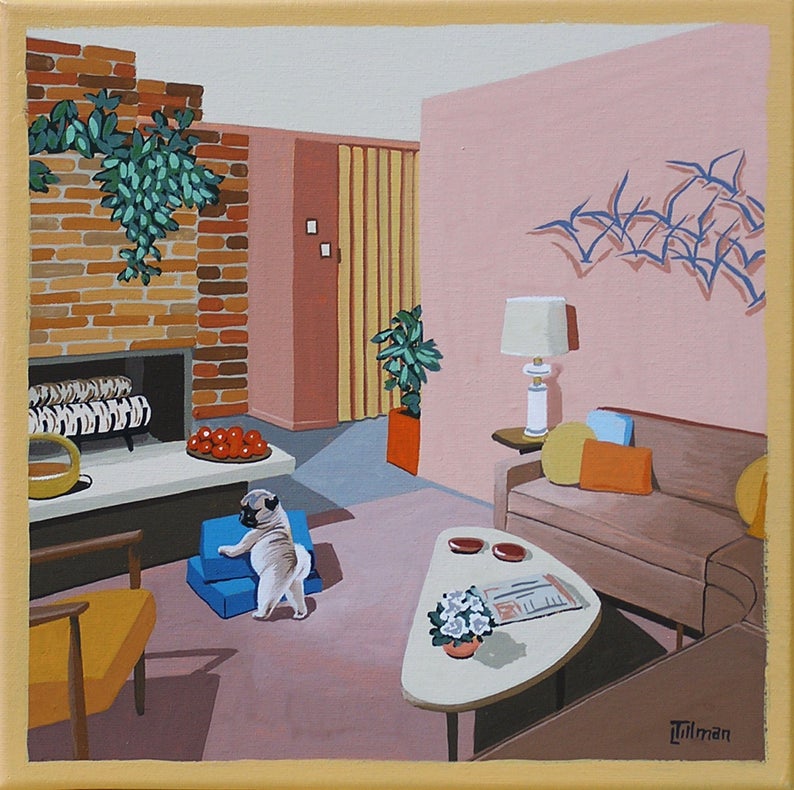 Every single print by artist Linda Tillman is full of nostalgia, color and iconic designs. There’s also a good chance you’ll find a pet featured somewhere in the composition. We fell for this adorable pug and the Curtis Jere Birds in Flight wall sculpture, but you’ll want to browse through her work to find your favorite breed or MCM motif.