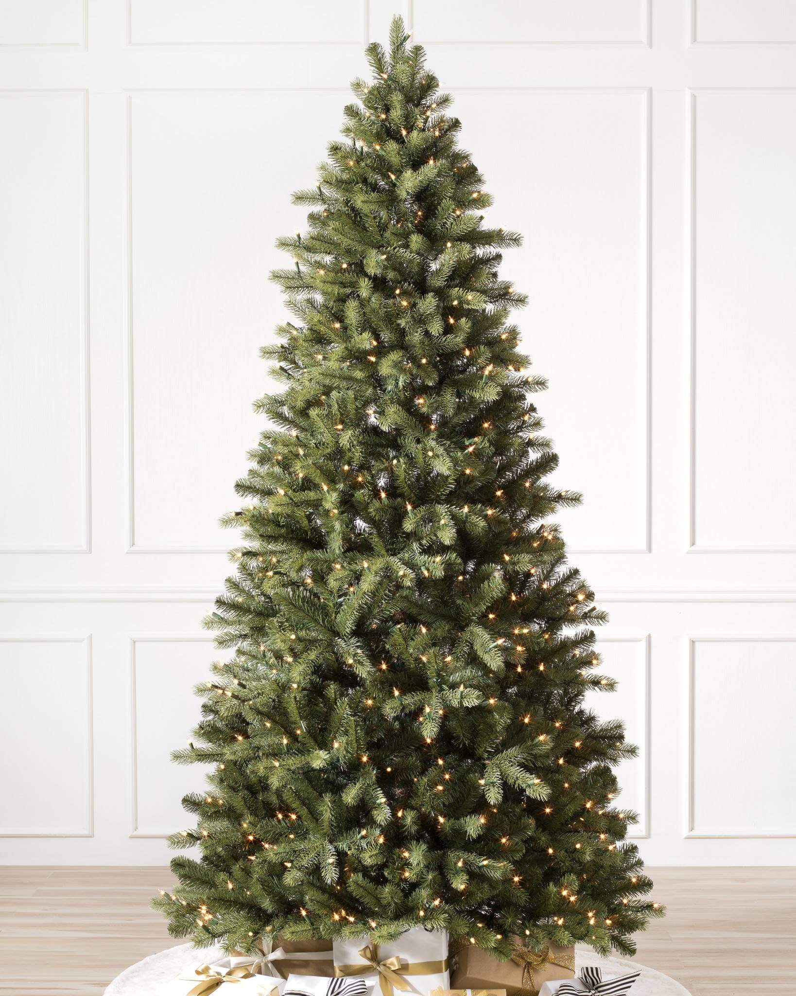 Ornaments have the space they need to shine with this Calistoga faux tree. The Pacific Silver Fir inspired its unique shape and linear gaps.