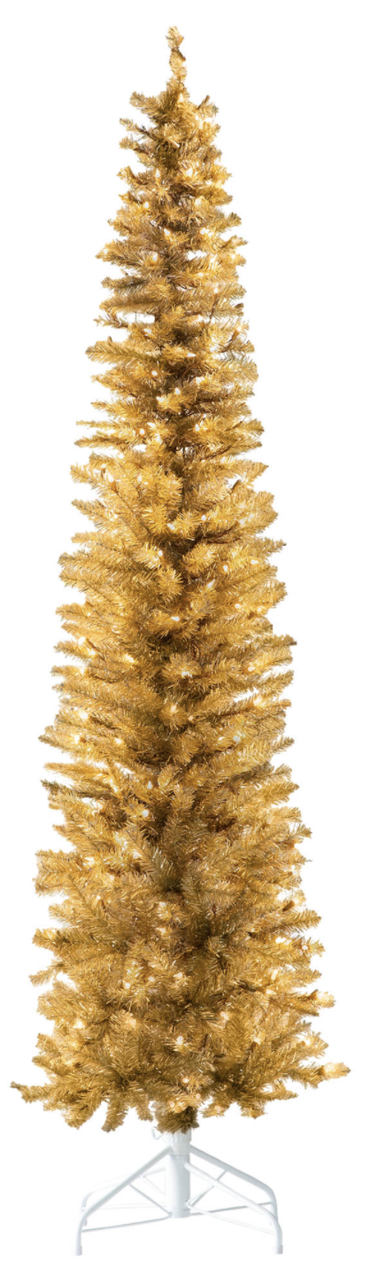 If you’re limited on space, try a slim golden tree. It will brighten any corner of your home.