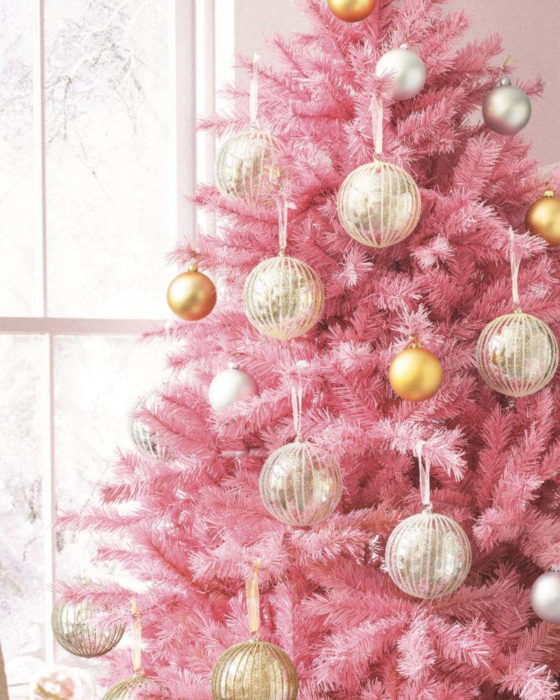 Consider a pink faux Christmas tree for a whimsical holiday display this year. It’s sure to be remembered!