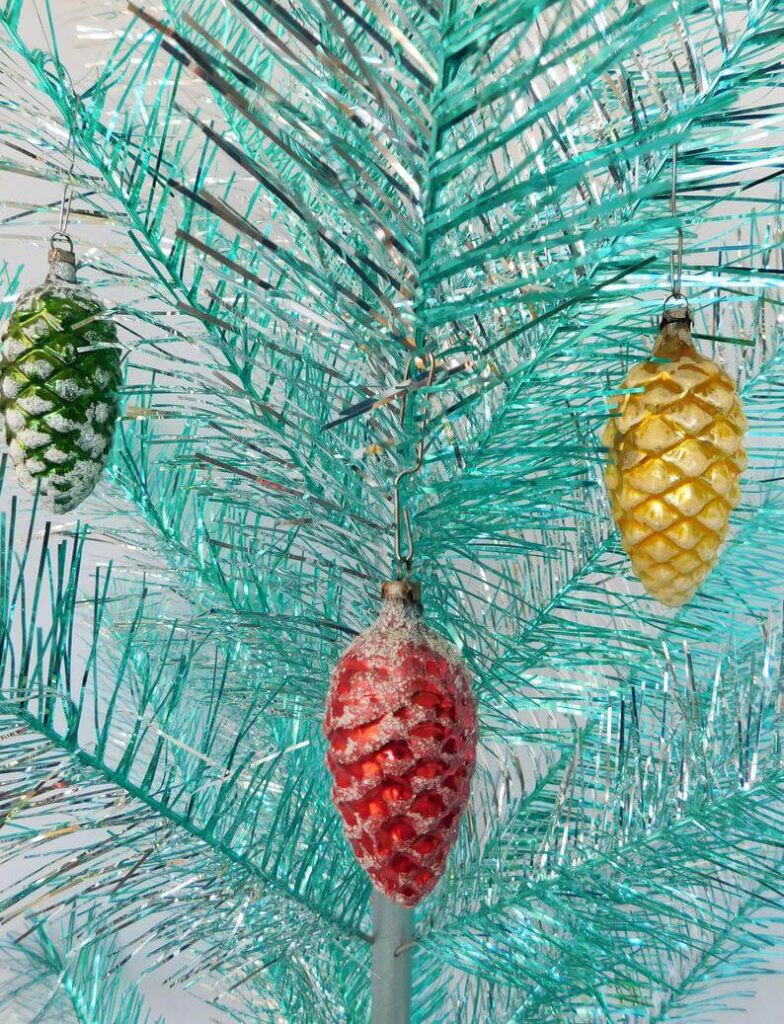 A little more traditional but still retro, this tabletop Christmas tree from the 1960s comes with pinecone ornaments and topped with a red star.