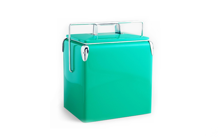 The beach is hot, but you want to keep those drinks cool. With a retro metal design, the aqua retro drink cooler is just the ticket.