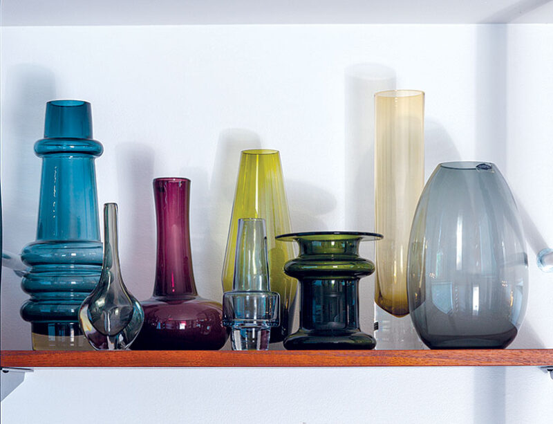 - Color. Are you looking for something neutral or for a burst of multihued glory? Scandinavian glass tends to be less colorful than Italian glass, for example. Think about what will complement the MCM décor in your room. Many glass aficionados gravitate toward a specific color and build a collection from there.