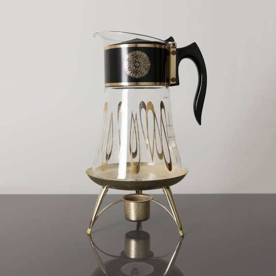 Hosting a brunch party? Serve your guests fresh coffee from a vintage starburst carafe! These beauties come in different shapes, sizes, and patterns. Designed to stylishly serve hot coffee, most of these carafes were used with a wire grid as they were not fit for direct stove contact. Some models even come with a warmer that allows for a votive to keep your brew deliciously warm.