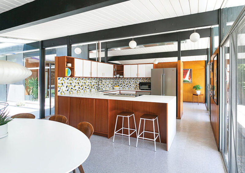 “We also gave original Eichler kitchen drawer fronts to our cabinet maker to replicate those with similar modern materials. The effect is all the beauty of the original but updated with modern practicality.”