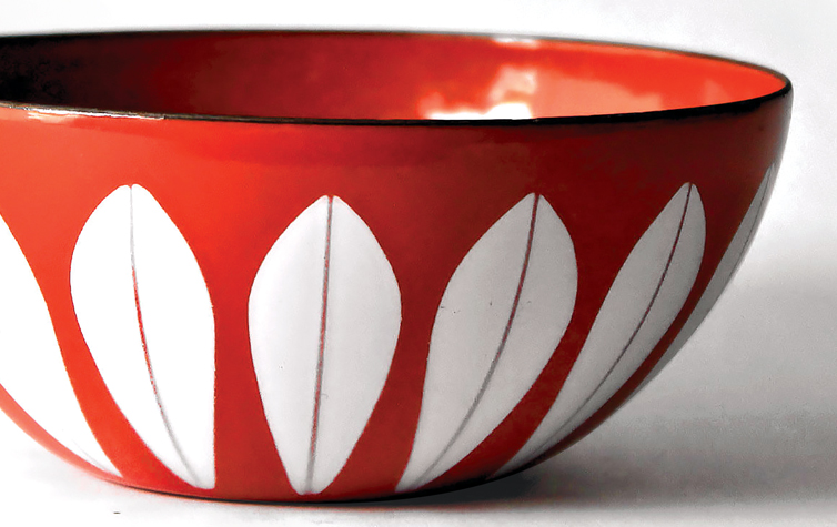 Aside from your local vintage shops, Cathrineholm kitchenware donning the colorful lotus leaf design can be purchased on eBay, Etsy, or 1stdibs.com, with an incredibly wide price range. If you are purchasing an entire set or if your cabinet space doesn’t allow for collecting bowls, casserole dishes, pots and pans, a piece of artwork might be just the trick. Clausen’s lotus design is so iconic that the kitchenware has become the subject of artwork and can be found in modern prints.