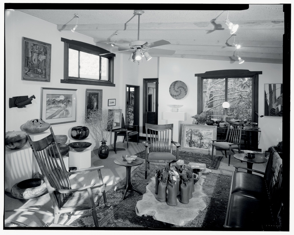 “It was here that Sam and Alfreda were inspired to invent their own nurturing, creative environment,” Kovara writes. “The Maloofs worked together at their homestead for almost five decades. Financial success didn’t come to Sam and Alfreda until many years later, but life was good with Sam in the shop and Alfreda in the office, managing Sam’s woodworking business. Under Sam and Alfreda’s care, and as their finances and time allowed, the Maloof family compound grew as Sam added new structures and additional rooms.”