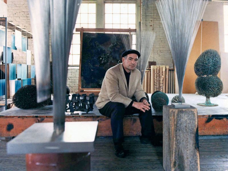 These sculptures use touch to produce a unique sound environment. Many of the sculptures resemble large cattails due to their long thin rods and thicker tops set in even clusters. From the gallery in his barn to the sculptures installed at places like the Federal Reserve building in Richmond, Virginia and Ohio’s Bowling Green State University, the pieces beautifully combine sound and sculpture for a dimensional experience.