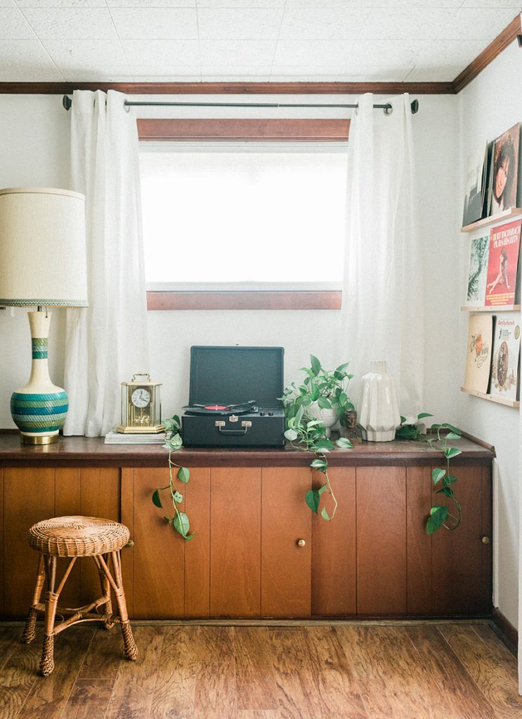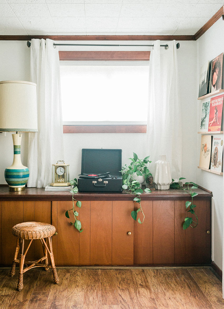 Carrie shares, “I love clean lines, tons of live trailing greenery and mashing different wood tones up against each other. To me, that feels like the perfect blend of my favorite elements from both the 1960s and ‘70s eras.”