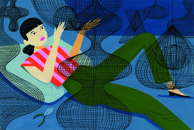 ES: In many cases the story of the woman I was illustrating informed how she was drawn. So for someone like Frida Kahlo, a painter who did a lot of self-portraits, I really wanted to focus on her face as well as include some staple icons from her artwork. With someone like Maija Isola, because it was difficult to find a lot of pictures of her, I read a lot about how she worked and did my best to imagine how her studio might have looked.