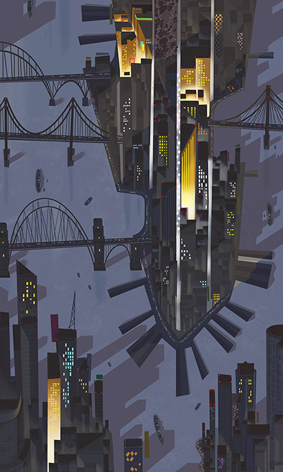 Mac George turns to the heavy hitters of the art world for his inspiration, finding muses in Pablo Picasso, Saul Bass, Irving Harper, Eyvind Earle, Juan Gris and David Klein. “They all exhibited beautiful manipulations of color and shapes. They all treated their pieces as complete compositions, not just representational pictures of objects. Positive and negative shapes were equally important.”