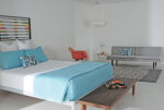 All three homes share the inclusion of white walls, chosen to focus on a color story and special, mid-century pieces that the homeowners wanted to highlight. “The white background creates a minimal palette for a riot of color,” Sally says. “This allows the objects in the room to be the focus.” But the color choice has another utility that goes beyond design preferences. “In Palm Springs, where it can be so hot in the summer, the white reflects light and helps the rooms feel cool and comfortable,” Sally says.