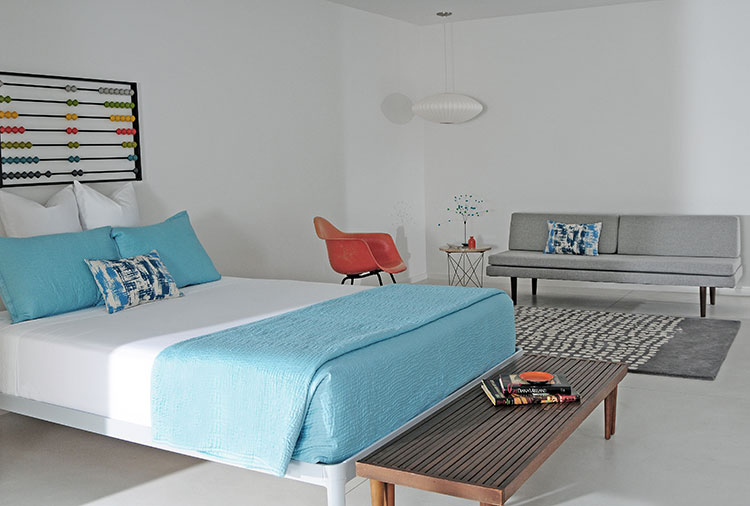 Because the design boutique thus has an eye for the nuances of MCM, each of its three favorite projects reflect a different spirit of Mid Mod. Depending on the homeowners’ preferences or the vibe of the classic home, the project can espouse a purist atomic era look or take on a wilder, outlandish design. Regardless of the exact expression of Mid Mod fashions, however, Modernous brings modern flair to each of these three pedigreed architectural properties.