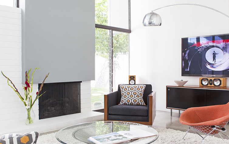Usually, the name of the game with midcentury style is to replicate every aspect of a modernist home exactly, down to the last detail. This means using each vintage piece in the same way it was used originally. But that doesn’t have to be the case. You can use a neat old piece in a new way to fit the needs of your space or your activities. In the Bonds’ Palm Springs home, Chris found a vintage George Nelson filing cabinet, made for Herman Miller, and had to have it. But he didn’t need a filing cabinet—he needed an entertainment center. The piece looks great in the retro living room, contributing to the authentic midcentury feel while also serving a functional purpose. If you fall in love with a piece online or at a flea market but can’t use it as it was originally intended, get it anyway and see where you might be able to upcycle it.