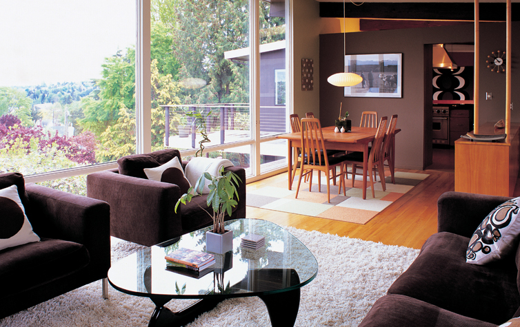 Continuing from the note above, you need the right windows to have an obstructed view. Walls bordering the outside should basically be windows, a la Raphael Soriano style. Homes that were essentially glass boxes are a tribute to many of the original and progressive midcentury homes. You’re respecting history, and get to have a prettier view of that forest—it’s a win-win.