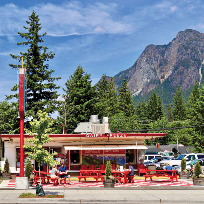 This Snoqualmie Valley town boasts some key locations from the cult TV show Twin Peaks, including Twede’s Café which played the Double R Diner. The 1940s era Coffee Shop was originally called Thompson’s Diner, then in the 1950s its moniker changed to the Mar-T Café when a brand new neon sign was added (and remains, to this day). It’s been known as Twede’s Cafe, named for its previous owner, since the late ‘90s. • Other stand-outs in North Bend include Scott’s Dairy Freeze, a classic mid-century drive-in from 1951; the streamlined North Bend Movie Theatre, built in the art moderne style from 1941; and the Mt. Si Motel, a low slung 1950s motor court also used in Twin Peaks.