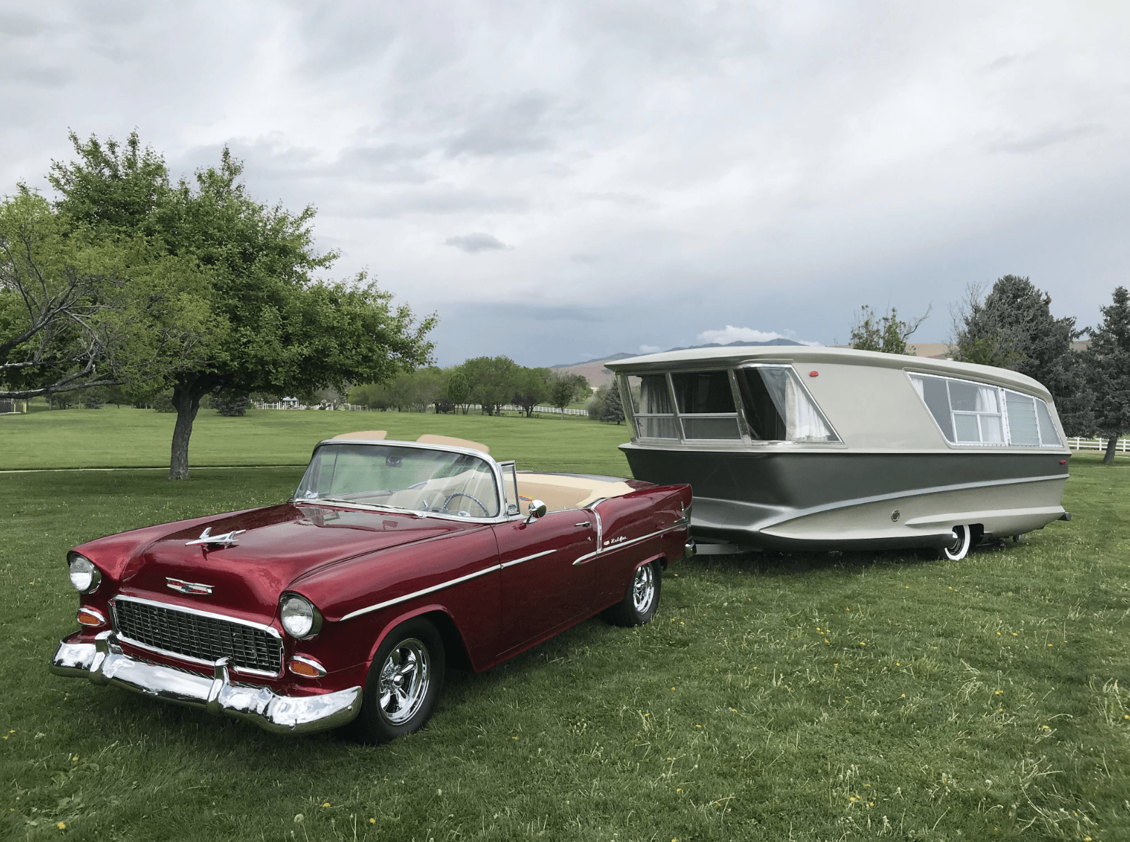 The Holiday House trailers were first produced in 1959 by David Holmes, President of “Harry & David” fruit company, out of Medford, Oregon. Made of aluminum and wood like most trailers at the time, these particular campers stood out thanks to their eye-catching design. Produced in limited quantity (it is believed that only seven were ever made) and also known as Model X, Pelly dubbed the Geographic model the “Trailer For The Rich.”