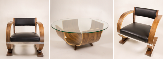Tony LaMorte has been creating custom furniture and artwork for over 50 years. Over the years his furniture and artwork have evolved from strict contemporary to a more mid century/art deco style. His work has appeared in galleries such as The Museum of Science of Industry in LA, the Northern Nevada Museum in Elko and the Common Thread Show at University of Nevada, Reno. We are proud to be showcasing The Gala Chair and The Kari Coffee Table.