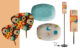 These groovy mid-century modern nesting tables (leftt) offer a playful yet sophisticated design, showcasing concentric orbs in vibrant retro hues. Made for small spaces or versatile arrangements, their teardrop shape adds a touch of whimsy to any room. Built with durability in mind, these tables are not just stylish—they’re practical, lightweight, and endlessly charming. And of course, the serving trays (center top and bottom) can bring a touch of retro whimsy to your table.