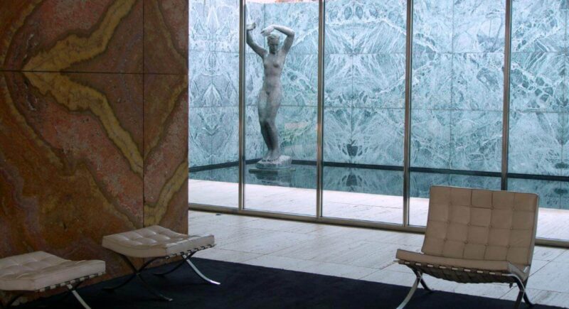 In 1929, countries around the globe sent their top representatives of industry, art and design to the Barcelona World Exposition. Reich and Mies worked together to design the famous Barcelona Pavilion, also called the “German Pavilion.” This simple, beautiful structure was designed as “an ideal zone of tranquillity,” as Mies described it. While other structures at the exposition were designed to house exhibits, it was the architecture itself that was on display at the German Pavilion.