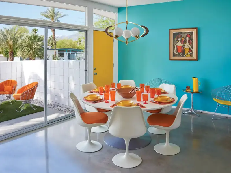 “To achieve a Palm Springs interior design look, focus on clean lines, natural materials like wood and stone, vibrant colors, geometric patterns and a seamless connection between indoor and outdoor spaces.”