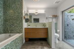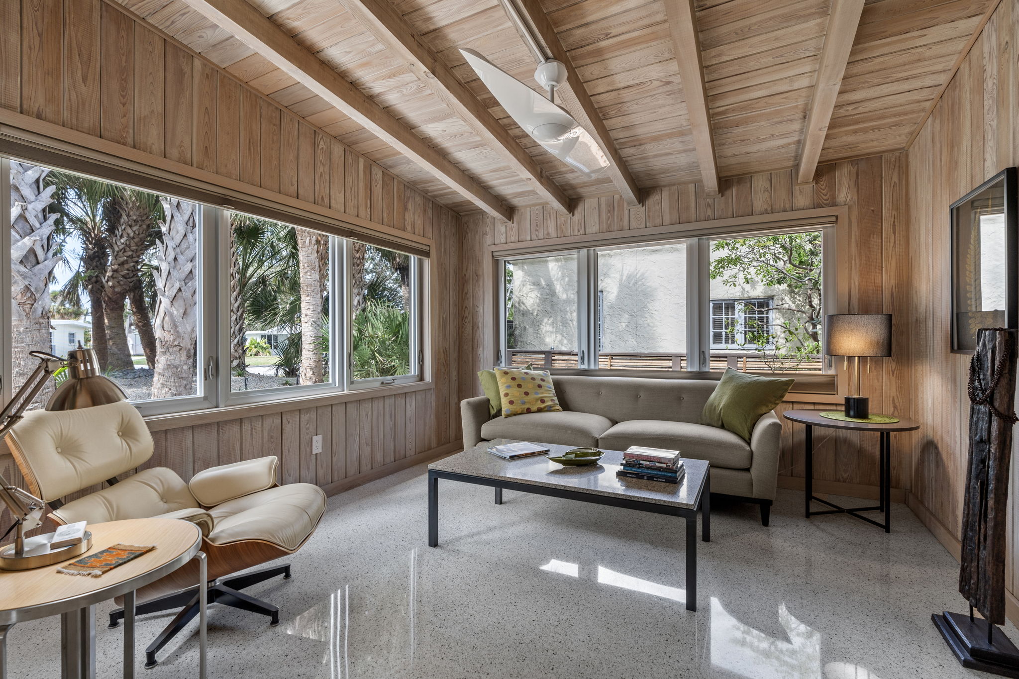 A brilliantly designed exterior by landscape architect Dane Spencer, includes a dramatic yet modest entry courtyard, stone paths that meander around stunning lush foliage that connects with secluded side patios. The pristine landscaping includes a bounty of tropical species including ferns, palms, crapes, oak and Cuban laurel trees. The garage is 1.5 car size, with workshop and built-in cabinets. The home is equipped with a Nuvo sound system, ADT alarm, art lighting, Rainbird sprinkler system, NEST temperature controls, Hunter Douglas window treatments, and an Ecowater filtration system in the kitchen. Most furniture, kitchenware, linens and select artwork included, under separate agreement. An inventory list is available for review. This home is not in a flood zone – 16.75 elevation.