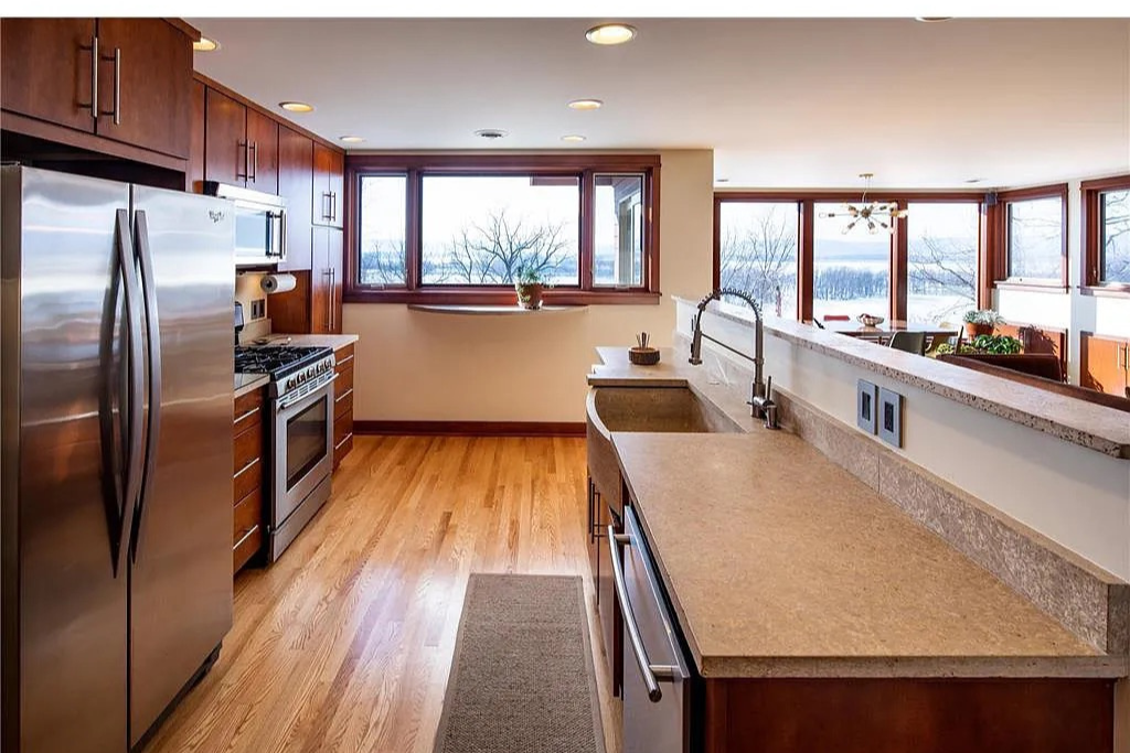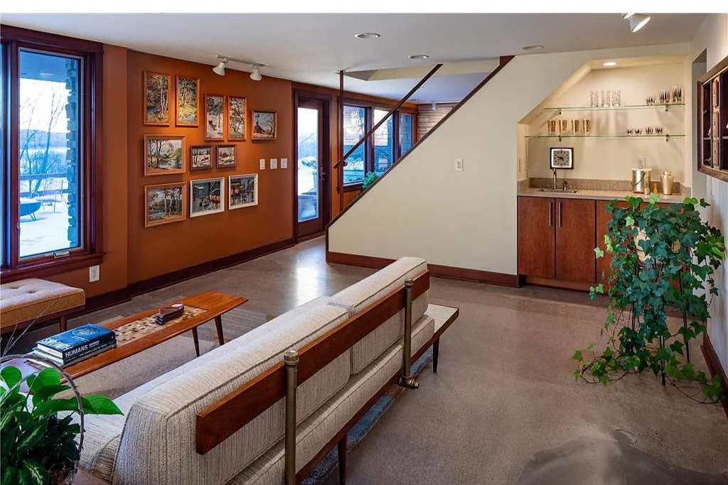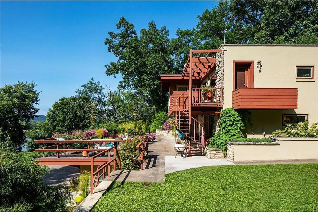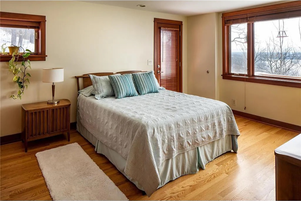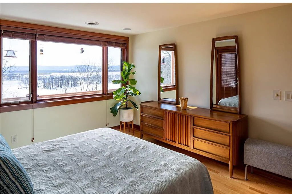 The private 4-acre retreat quietly enlivens all your senses on a daily basis, & in meditative manner, yet is in close proximity to the best of what the River Valley has to offer (see supplement of local favorite restaurants, museums, parks and river access). Just up the road, in Fountain City, are multiple options for launching your boat onto the Mississippi, as well as larger marinas nearby for boat access & storage. The multi-level home is being offered fully furnished with carefully curated mid-century modern furnishings & collectables, making it an easy “MOVE IN READY” choice for buyers wanting a second home, a business venture through VRBO or AirBnB, or a personal work and/or retirement space that has a bedroom en-suite on two levels including heated floors in the primary bathroom, & an open floor plan throughout. Two oversized garages allow for convenient access to both the lower & upper levels. The multiple decks (not counted in the sq. ft.) nearly double the entertaining space!
