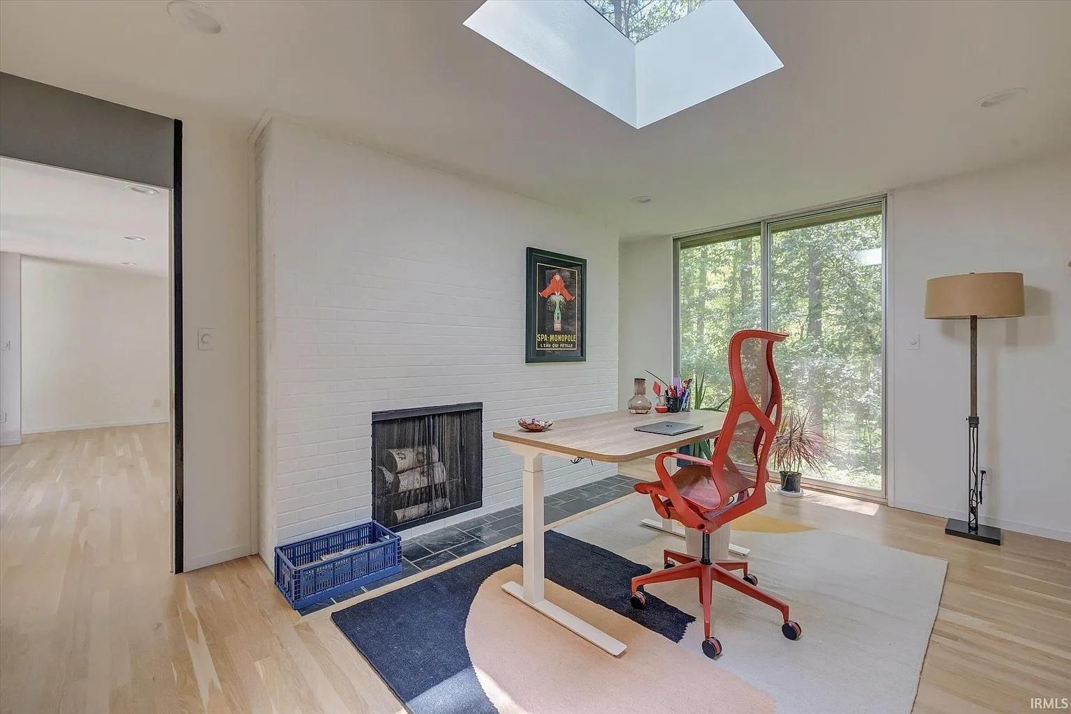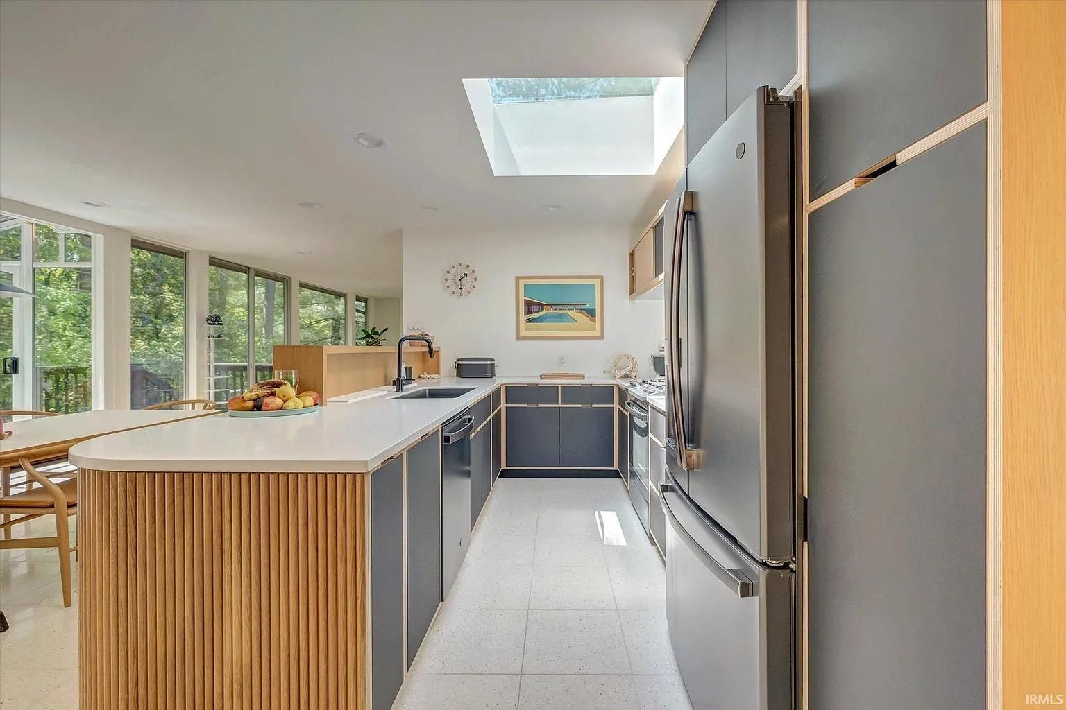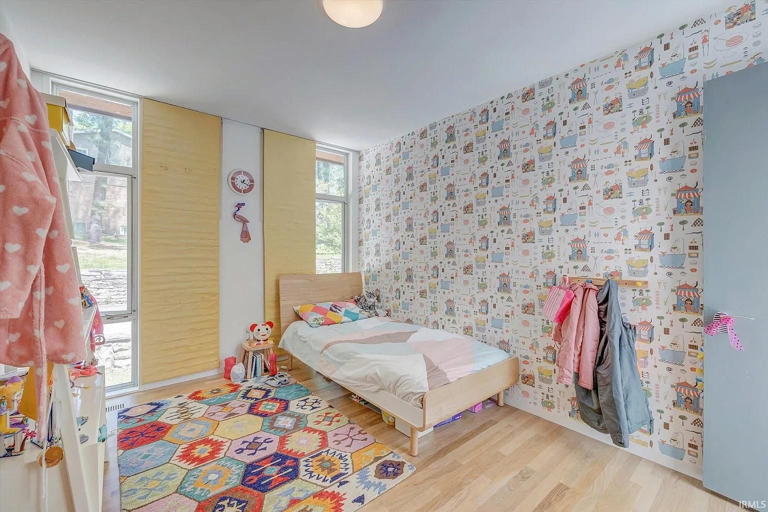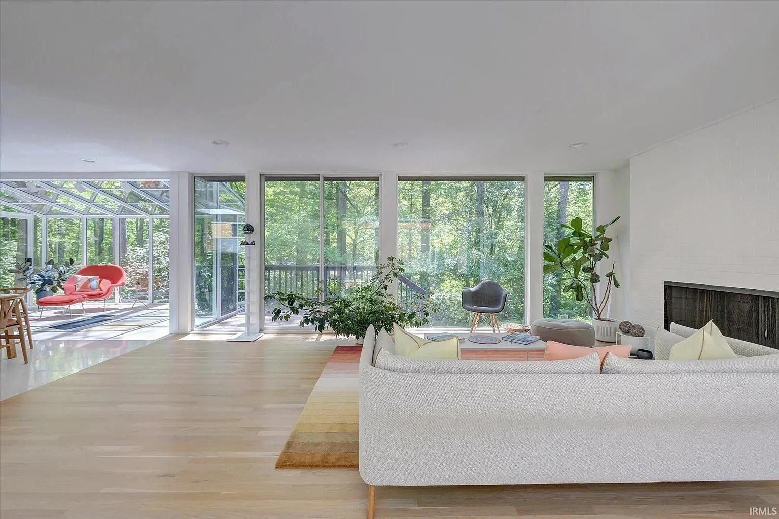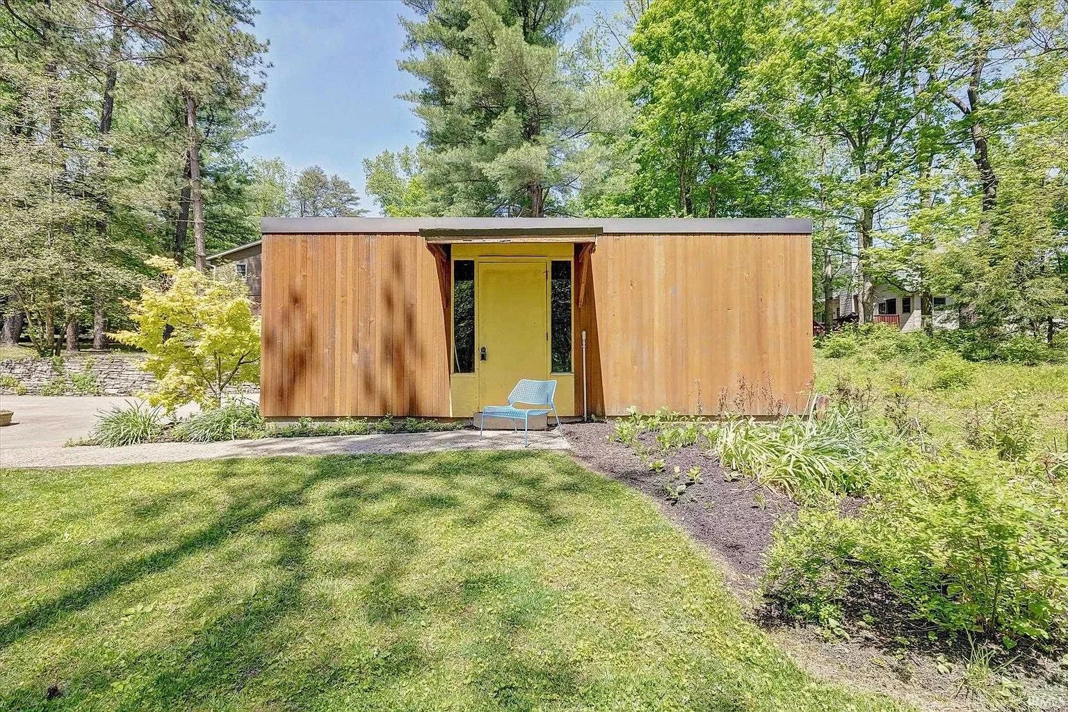 The home’s open floor plan, featured in Better Homes & Gardens and Dwell magazines, connects all rooms in a square around a central open-air atrium that welcomes guests into the heart of the home. The flow of the home allows for ease of entertaining from the indoors to the outdoors. The artistic and cultural enthusiast will feel captivated by the home’s clean lines, beautiful natural materials, abundant natural light, wide expanses of glass, and seclusion on a cul-de-sac. You’ll never want to leave home! But when you do, you don’t have to go far for popular dining and coffee, grocers, sports facilities, a movie theater, and Indiana University campus. Live in harmony with nature, yet close to it all!
