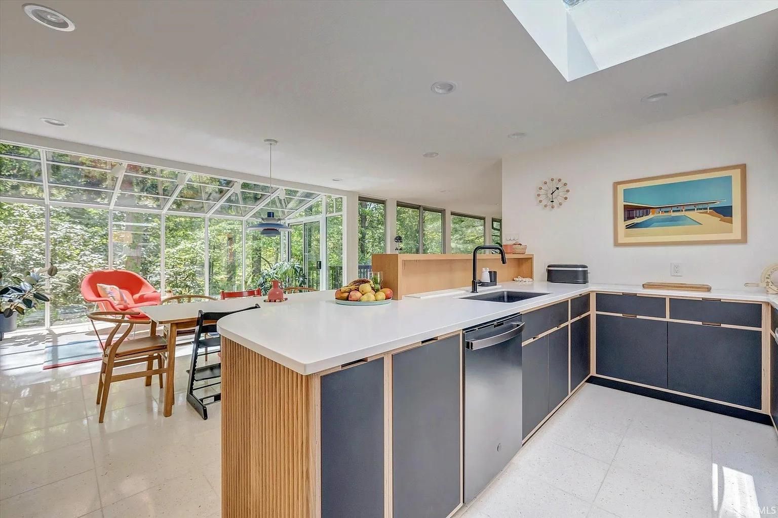 Don’t miss your opportunity to live in this modernist architectural gem nestled in desirable Bittner Woods. A true piece of art, this house is the work of award-winning architect Earl R. Flansburgh and epitomizes the mid-century movement of “Modernism to the woods”. Offering 4 bedrooms plus a spacious study, 2.5 baths, and a 0.67 acre homesite, this one-level home lives so comfortably. Professionally redesigned in 2020 with the help of Susan Yeley Homes, it now boasts new commercial grade roofing & insulation; oak hardwood floors; terrazzo tile floors; enlarged back deck; Stoll’s Woodworking custom kitchen cabinetry; and fresh paint throughout.