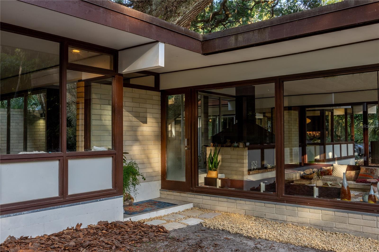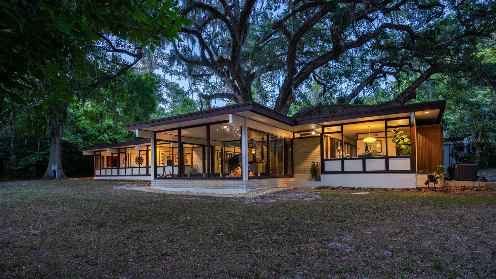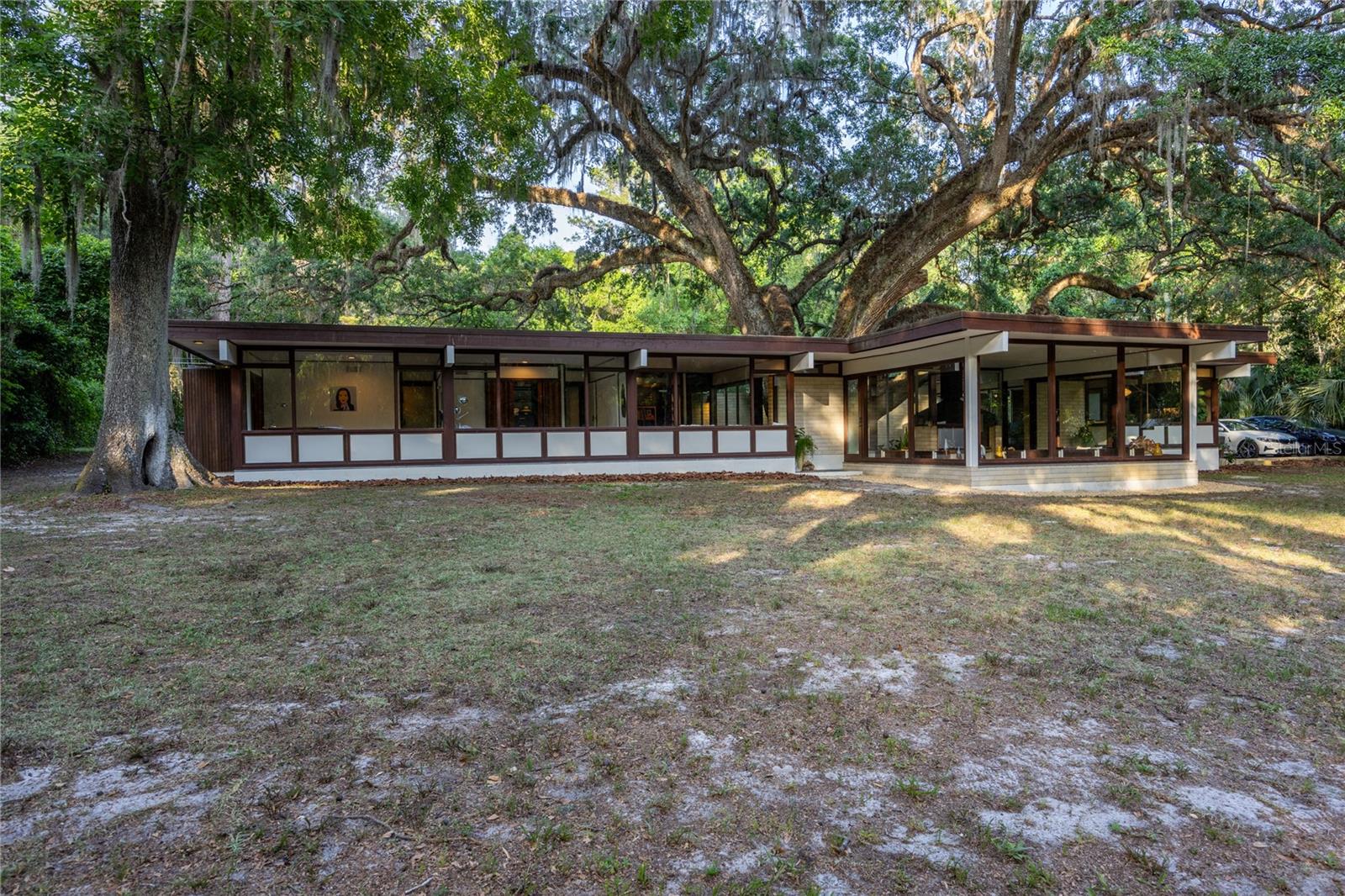 Its expansive glass walls look out over a 1.65-acre property, which backs onto undisturbed forest just steps from Newnans Lake. This 3 bedroom plus office, 2 bathroom home respects its original design while breathing new life into its iconic elements with subtle sophistication.