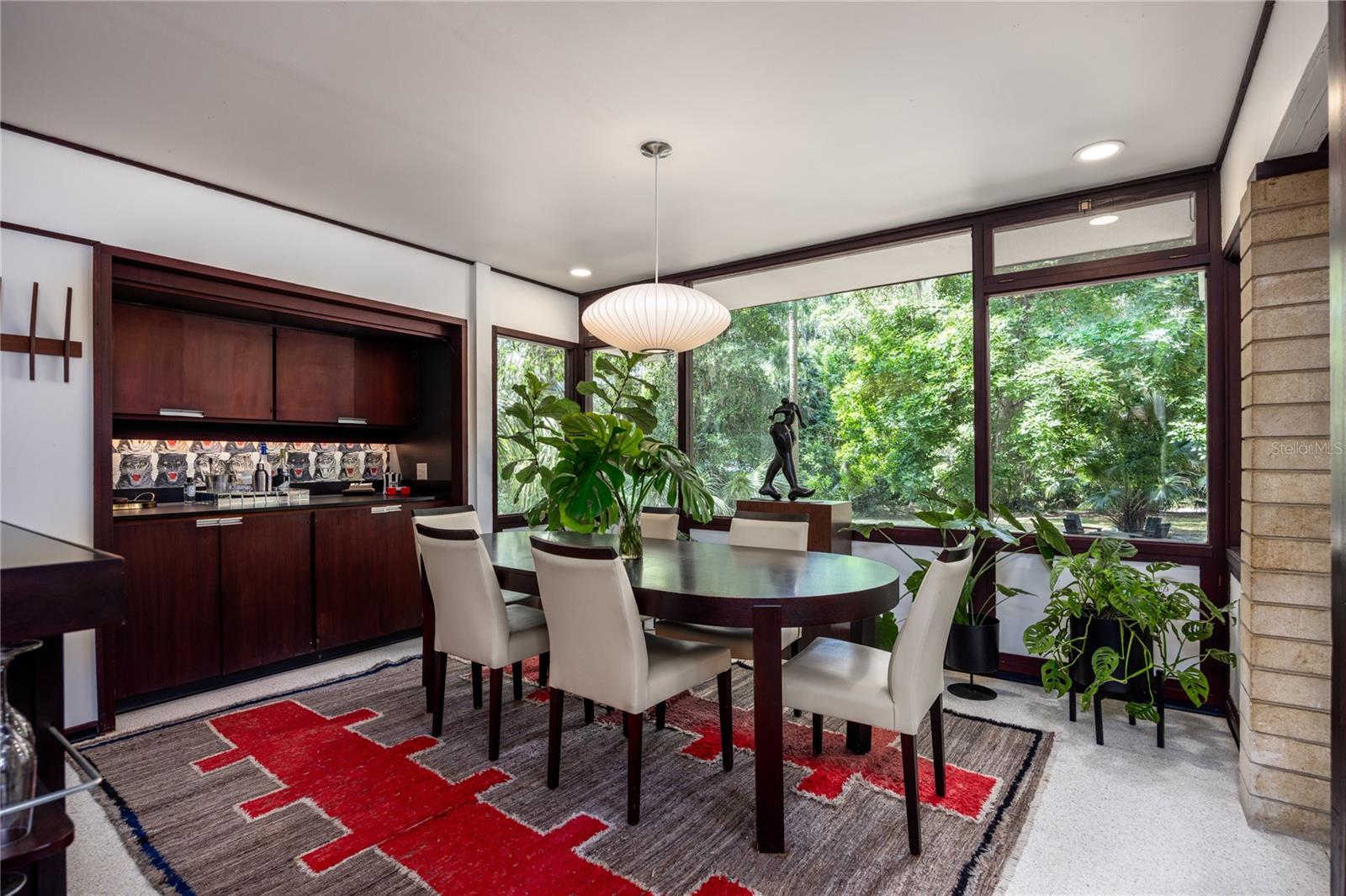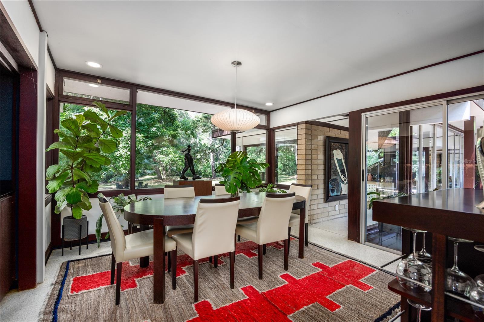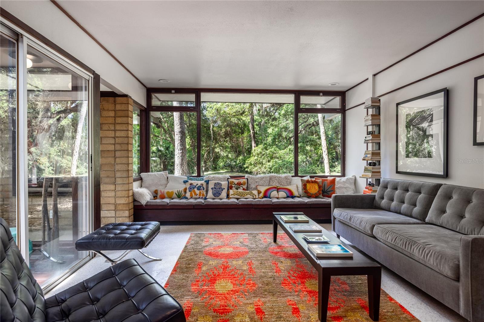 Its expansive glass walls look out over a 1.65-acre property, which backs onto undisturbed forest just steps from Newnans Lake. This 3 bedroom plus office, 2 bathroom home respects its original design while breathing new life into its iconic elements with subtle sophistication.