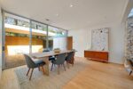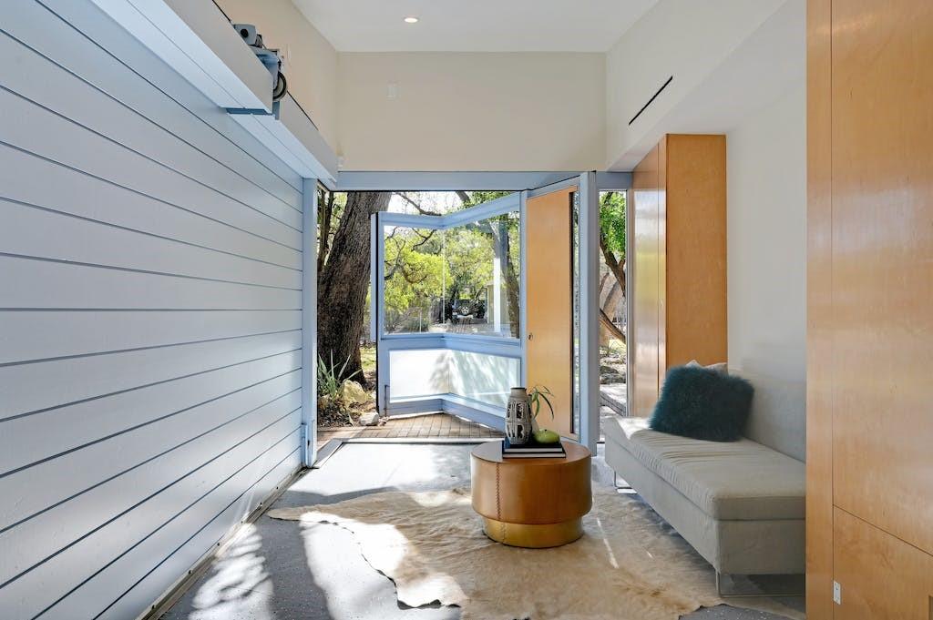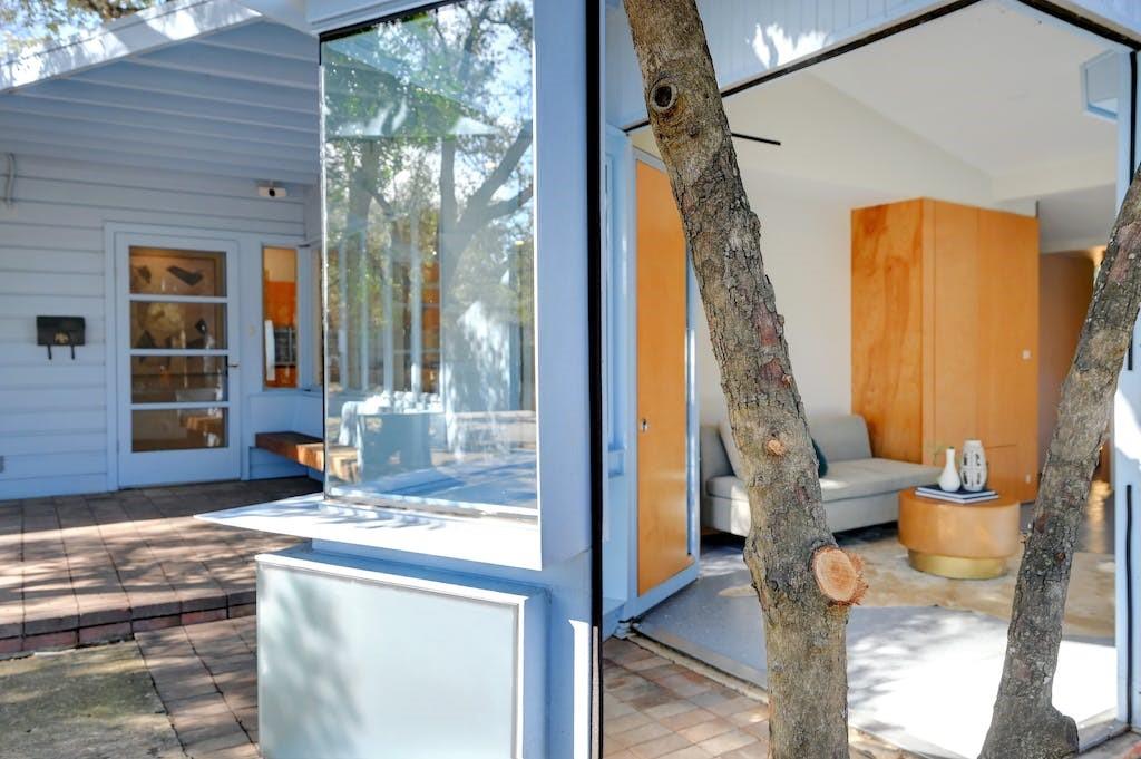 In 2016, the award winning “transformer room” was created to connect the interior to the exterior via architectural walls featuring a modern drawbridge and custom glass corner that hinges open to the neighborhood.