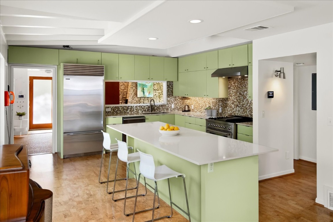 Step inside, and you’ll find a seamless blend of vintage charm and contemporary luxury. From high-end kitchen finishes like a SubZero refrigerator and Ilve Italian gas stove, to casement windows and vintage lighting, every detail has been carefully curated to maintain the midcentury aesthetic with a commitment to quality & comfort.